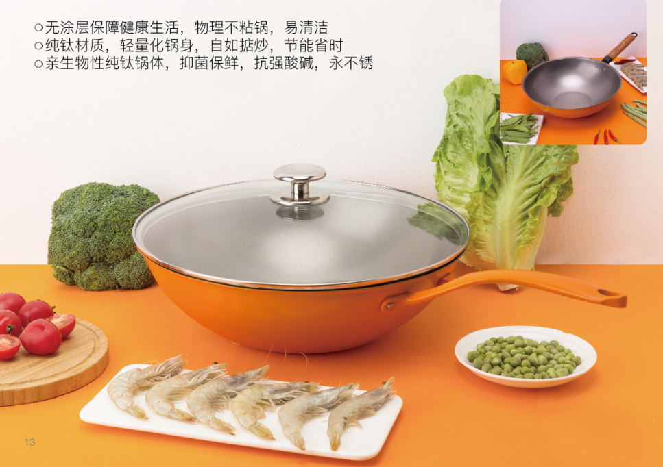 李文軍說,"鈦藝"正是在技術儲能的支撐下一步步走到了前臺。現在正式推向市場的鈦炒鍋已經是第四代,具有物理性不粘鍋的清洗特點。他說,從2011年開始研發鈦民用生活品以來,走了不少彎路,積累了不少經驗,在彎路中修復不足,在積累中完善技術,實現了"鈦藝"產品的一次次升級。"鈦藝"表面處理的獨有工藝正在申報國家專利。
